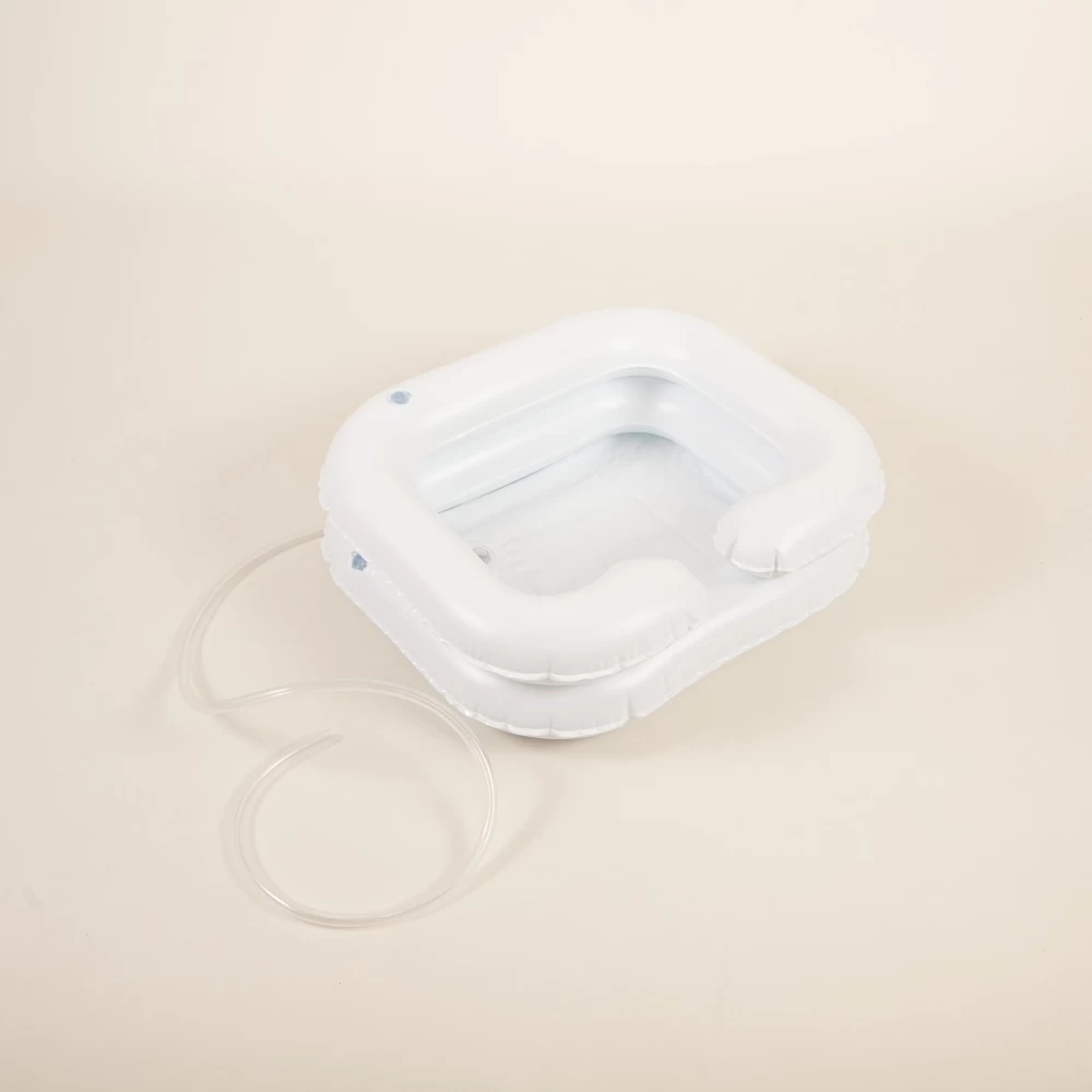 Endlich Haare spritzfrei im Bett waschen. Gibt Kopf und Nacken bequemen Halt beim Haarewaschen. Dieses luxuriöse Haarwaschbecken verfügt über zwei Aufblaseinheiten und verhindert Spritzer. Hergestellt aus strapazierfähigem Vinyl für eine lange Lebensdauer. Inklusive Ablaufschlauch 119 cm.