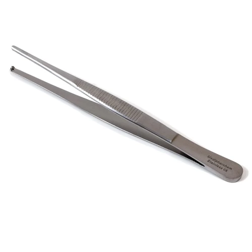 Chirurgische Pinzetten sind immer mit Zähnen zum Fassen von Gewebe ausgestattet. Die Zähne sorgen für einen hohen Halt ohne viel Druck, aber das Gewebe ist perforiert.
