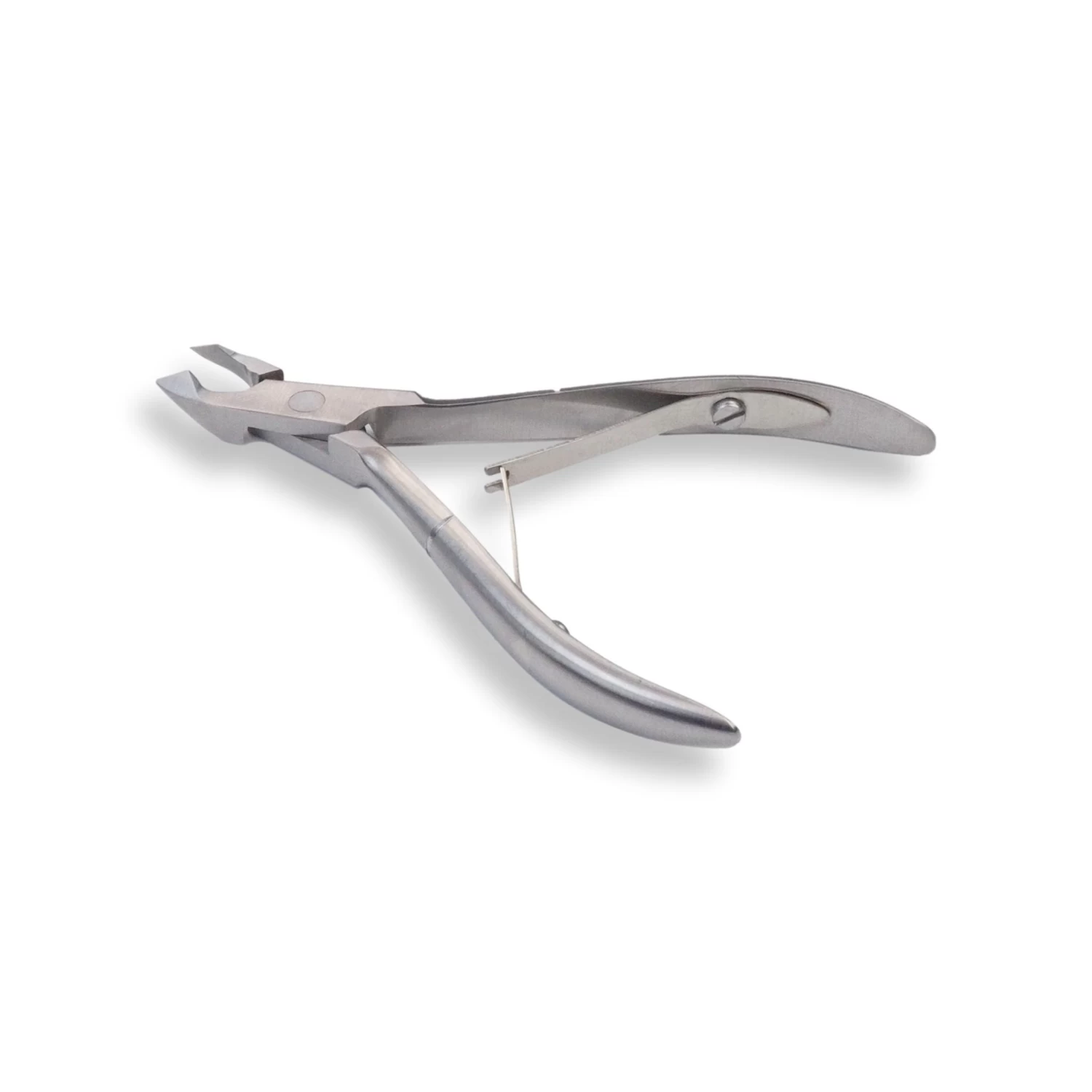 Edelstahl-Fällzange 10 cm. Kleine Zange mit Querfeder zum hautnahen Abschneiden von Fellen. Das Maul der Pinzette ist 5,5 mm lang.