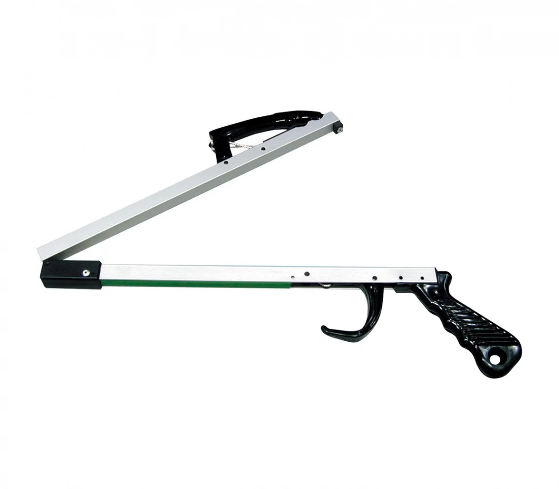 Dieser Klappgreifer lässt sich leicht von 67 auf 34 cm zusammenklappen. Der Greifer hat oben einen Magneten, um kleine Metallgegenstände aufzunehmen.