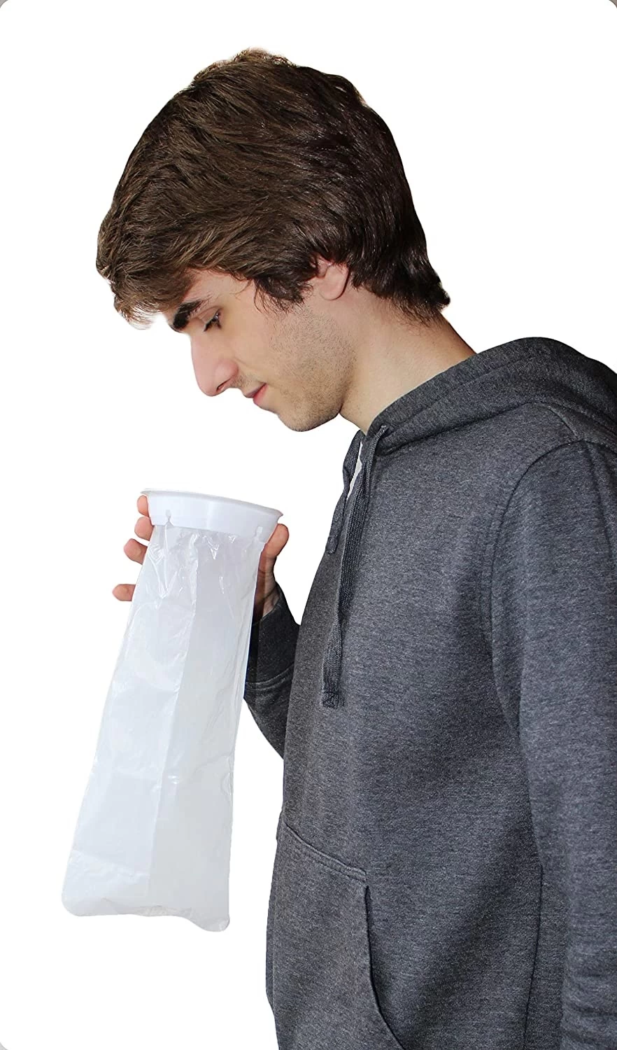 Für Privatpersonen sind Spuckbeutel ideal zum Mitnehmen mit Ihnen im Auto, im Flugzeug oder auf einem Boot. Dies sind Orte, an denen Übelkeit (insbesondere bei Kindern) auftreten kann. Durch das große Mundstück ist er einfach zu handhaben und beugt Kontaminationsrisiken vor.